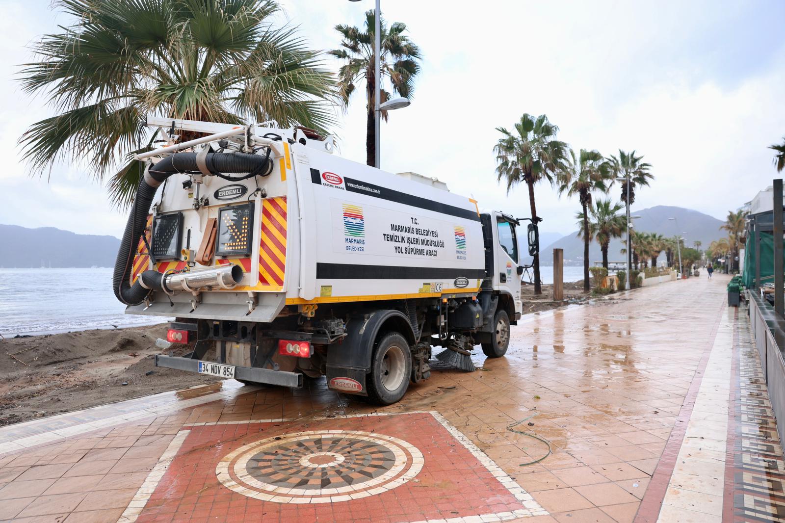 Marmaris Belediyesi, fırtına ve kuvvetli yağış öncesinde uygulama alarak Temizlik İşleri, Fen İşleri, Zabıta ve Park-Bahçeler Müdürlüğü ekiplerini sahaya sevk etti. Taşkın riskine karşı mazgal kapaklarını açan ekipler, gece boyunca biriken yaprak, ağaç dalı ve diğer atıkları düzenli olarak temizledi.